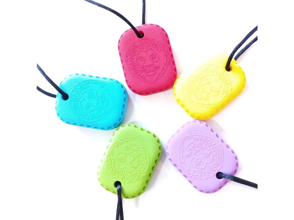 Niektoré deti, ktoré majú ADHD, aspergerov syndróm či autizmus môžu mať rôzne nekontrolovateľné tiky. Pre tieto deti a tiež pre tie, ktoré bývajú často nesústredené či hyperaktívne máme mäkké silikonové kúsatko s levom, ktoré môžu nosiť aj ako talizman v škole či doma.