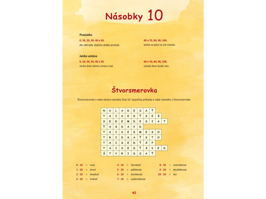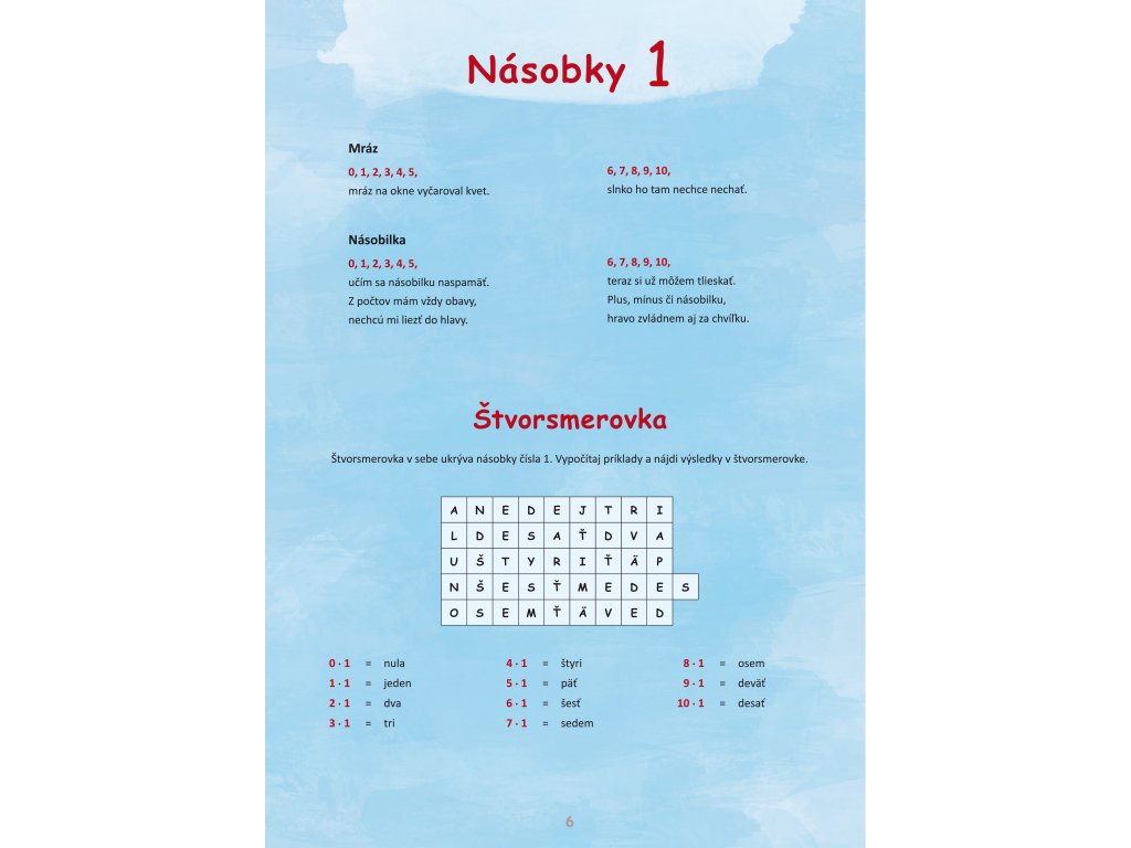Kniha Násobilka – Veselé počty s klaunom Matejom ponúka deťom, ktoré sa zoznamujú s malou násobilkou, veselé a zábavné cvičenia, pri ktorých si násobilku dobre zapamätajú. V knihe nájdu veselé básničky, zábavné príklady alebo štvorsmerovky. Klaun Matej ich prevedie násobkami čísel od 0 do 10 a deti si pritom nenásilne precvičia celú malú násobilku. Navyše sa naučia čísla správne zapísať číselne aj slovne.