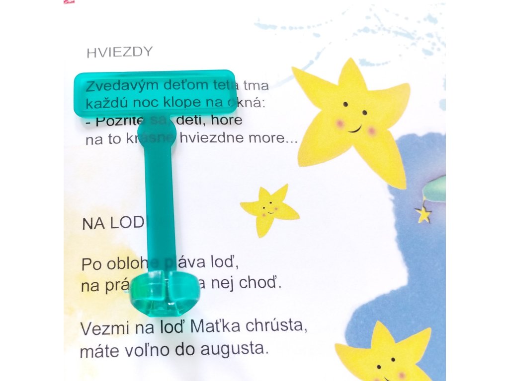 Pre malé deti, ktoré si ešte pri čítaní musia ukazovať prštekom, dyslektikov, poruchami ADHD, pri strabizme (škúlení) sú vhodné aj naše farebné ukazovátka, ktoré sa jednoducho navlečú na prst...
