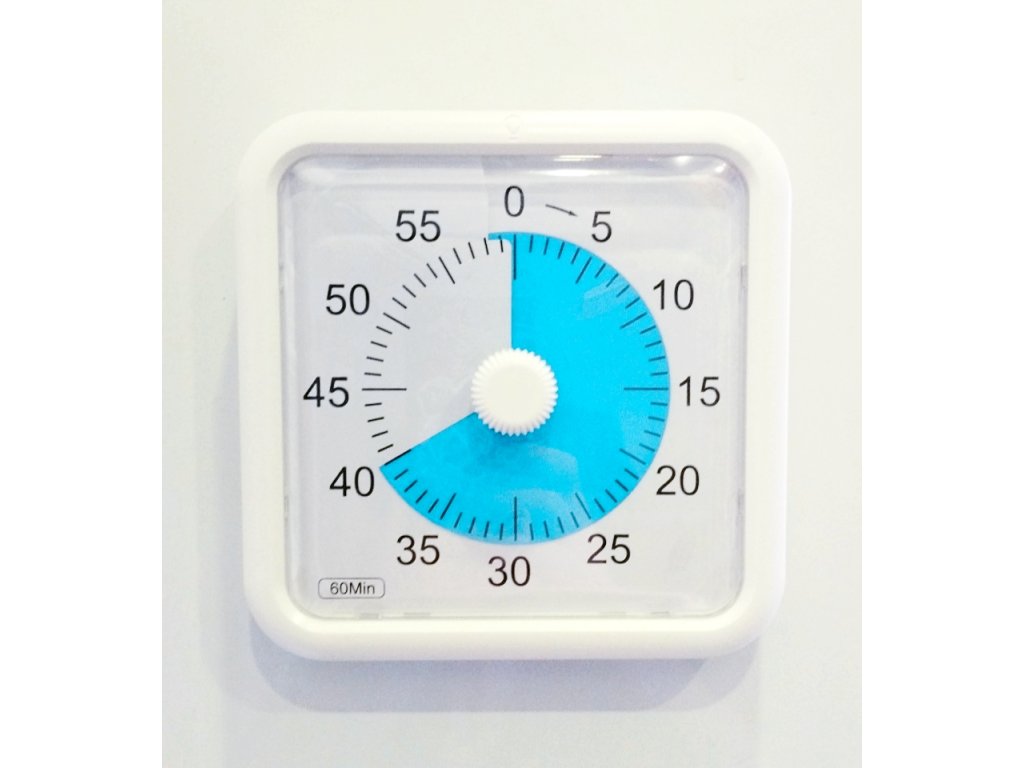 Tento vizuálny časovač je ideálnou pomôckou pre deti, ktoré potrebujú vidieť, koľko času im zostáva. Vďaka zreteľnému modrému zobrazeniu ubiehajúceho času a jednoduchému ovládaniu si deti ľahšie plánujú úlohy, učia sa pracovať v časovom rámci a znižujú stres z neznámeho „koľko ešte“. Po uplynutí času, zaznie zvukový signál.